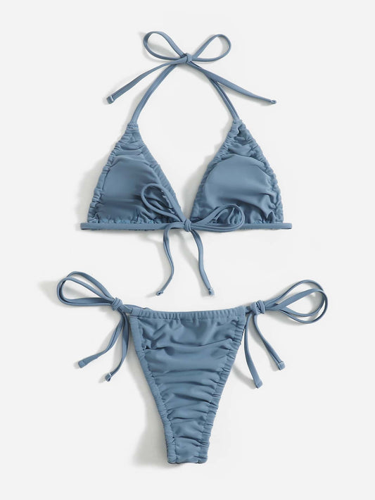 Bikini con tanga triángulo fruncido halter