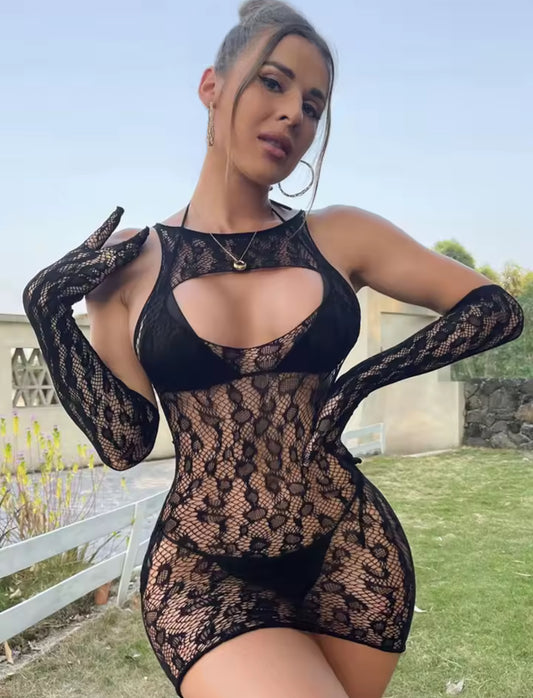 Malla tipo vestido con guantes Karol negro