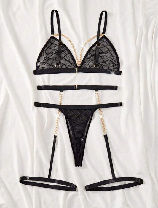 Set de lencería floral Rosa transparente 4 piezas incluye ligas